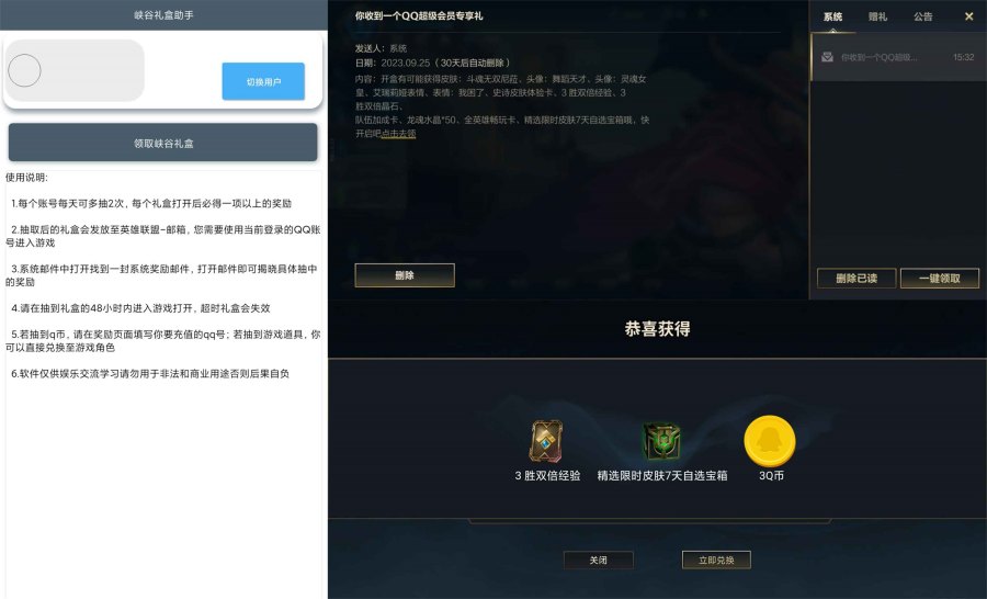 一键即可领取每日峡谷超值礼盒。