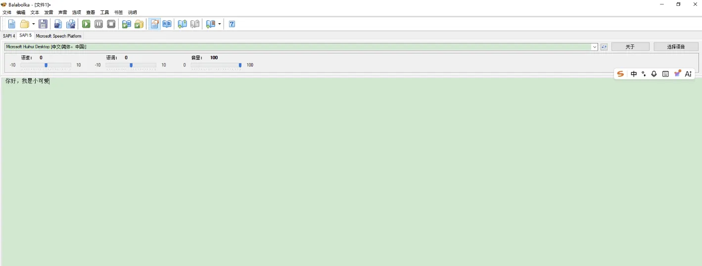 Balabolka是一个文本转语音(TTS)的程序。Balabolka可以使用计算机系统上安装的所有语音。屏幕上的文字可以被保存为一个WAV,MP3,OGG或者WMA文件。该软件可以读取剪贴板的内容,可以查看AZW,AZW3,CHM,DjVu,DOC,EML,EPUB,FB2,FB3,LIT,MD,MOBI,ODP,ODS,ODT,PDB,PDF,PPT,PRC,RTF,TCR,WPD,XLS和HTML文件中的文本,可自定义字体和背景颜色,控制从系统托盘阅读或者使用热键。 Balabolka使用微软的语音API(SAPI)的各种版本,它可以改变语音的参数,包括语度和语调。用户可以应用特殊的替代清单,以提高语音的清晰度质量。当你想改变的单词拼写时这个功能就非常有用。纠正发音规则使用regexp的语法