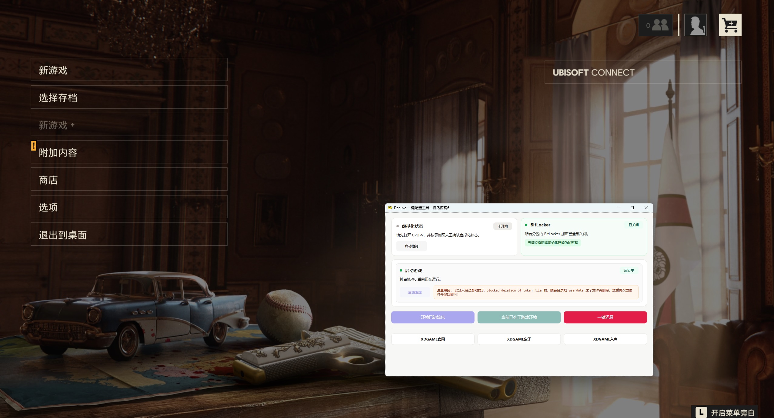 重启电脑后继续打开Denuvo.exe点击 启动游戏 → 开始玩耍
