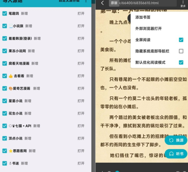 支持开启护眼模式功能,使用蓝光过滤保护视力,另有全文搜索,自动生成目录,书签功能。