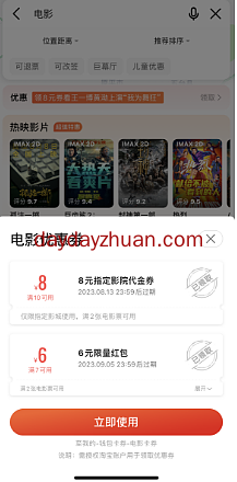 高德地图APP搜索:电影 界面会弹出优惠券弹窗,手动点击领取,8元代金券找我回收可变现2元