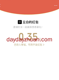 立白的纯福利活动,扫码进入或微信打开链接,观看15秒视频,自动弹窗提示获得一个微信红包,金额随机,亲中0.35元,差不多秒推微信,微信号多的可以多撸。 活动时间:2023年8月18日-9月9日