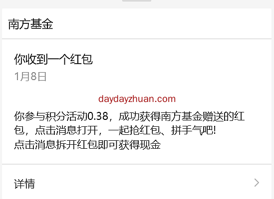 南方基金举办的开启年度账单抽红包活动,通过打开微信进去活动里,按照提示开启年度账单并且下滑到底部可以进去抽取新年福利,每天抽签后可以抽奖1次,完成2个简单的浏览任务还可以再抽2次,每天都可以去,中到的现金红包可以提现到银行卡,非必中。 小编提示:微信扫码点图进去,下滑到底进去,每天抽签后可以抽奖1次,完成2个简单的浏览任务还可以再抽2次,每天都可以去,中到的现金红包可以提现到银行卡,非必中 活动地址:微信打开:https://mp.weixin.qq.com/s/X-qkxLoRyesh9CBH0Lxvdg